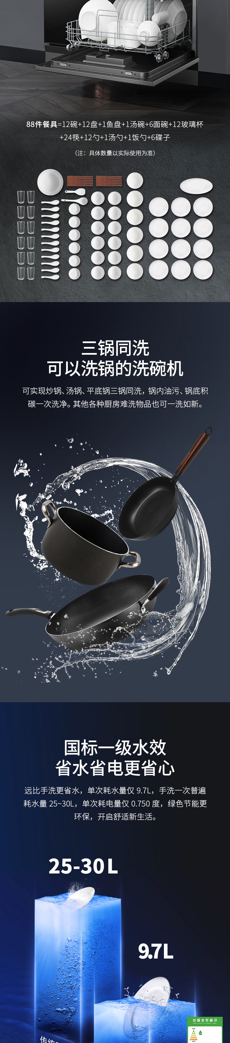 12套大容量洗碗機,可容納88件餐具