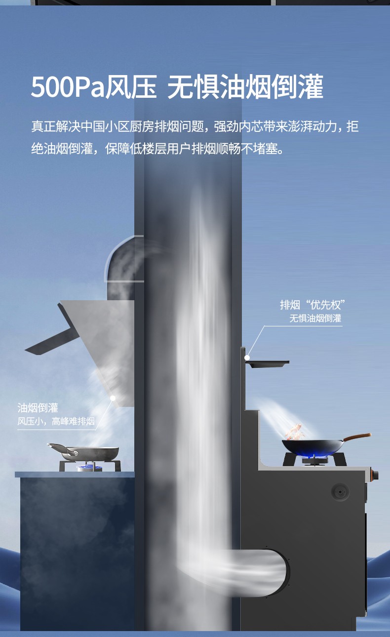 500Pa風壓 無懼油煙倒灌
